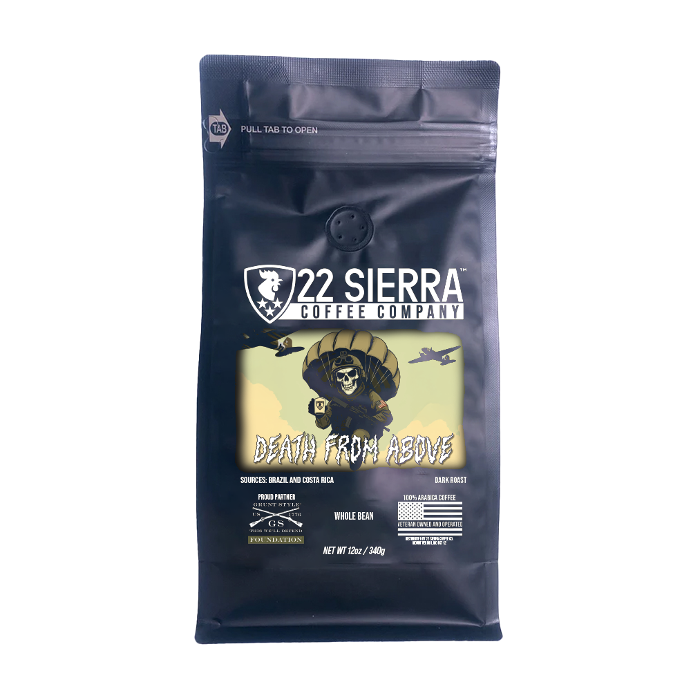 This blend of specialty arabica beans was crafted to honor the brave men and women of the airborne community and is expertly roasted to extra dark perfection to deliver a bold and full-bodied flavor.